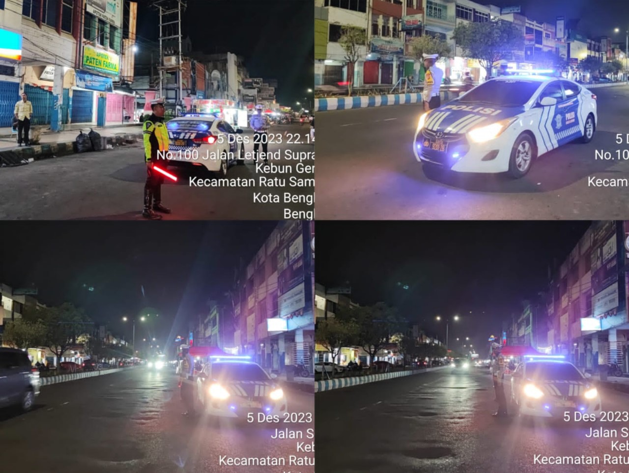 Bengkulu – Personel Sat Lantas Polresta Bengkulu Polda Bengkulu, Patroli Blue Light di Jalan Pariwisata dan Jalan Soeprapto Kota Bengkulu pada Selasa (05/12/23) pukul 22.30 WIB s/d selesai.