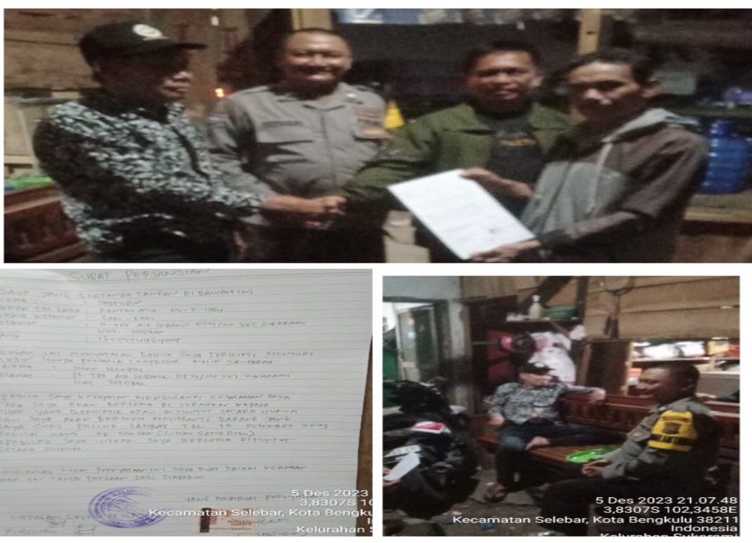 Dalam kesempatan itu, Bhabinkamtibmas Polsek Selebar Aiptu Supardi. S.I.Kom., memediasi kedua belah pihak di kediaman Ketua RT 23 Jalan Air Sebakul RW 04 Kecamatan Selebar Kota Bengkulu, Selasa (05/12/2023).