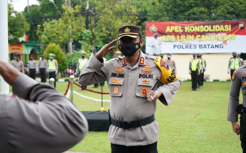 Kapolres Batang AKBP Edwin Louis Sengka, SIK, M.Si, memimpin Apel Konsolidasi berakhirnya Operasi Lilin Candi 2020 di Halaman Mapolres Batang, Rabu (6/1/2021).