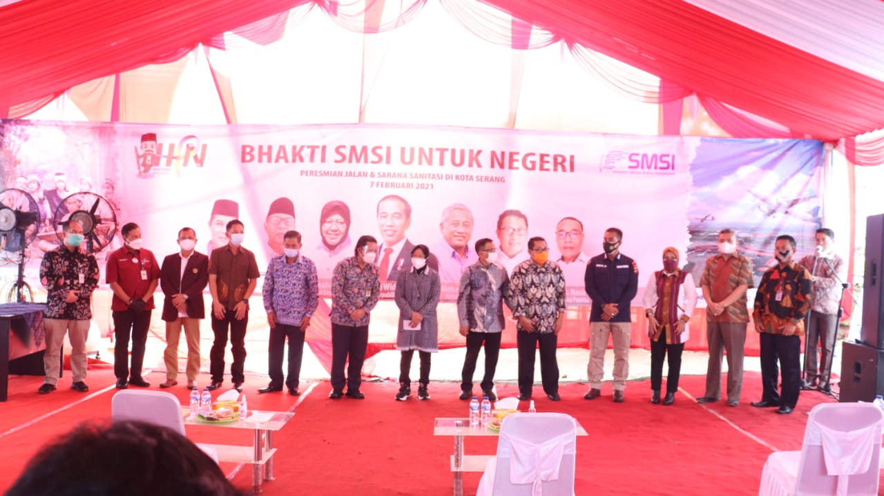 SMSI yang beranggotakan 1.224 perusahaan media siber itu memperingati HPN 2021, salah satunya dengan melakukan kegiatan bakti sosial yang meliputi pembangunan jalan dan sarana sanitasi Mandi Cuci Kakus (MCK) di Kampung Jaha, Desa Pagar Agung, Kecamatan Walantaka, Kota Serang, Banten.