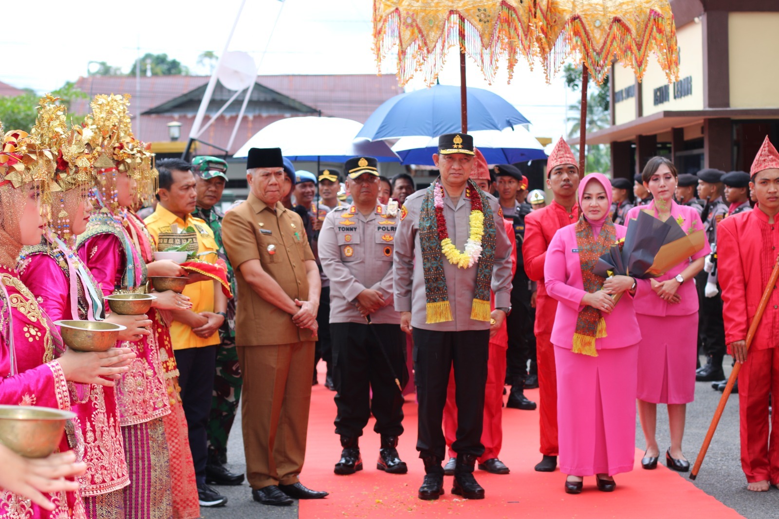 Kedatangan Kapolda Bengkulu disambut langsung Kapolres Rejang Lebong AKBP Tonny Kurniawan dan Forkopimda Rejang Lebong, kemudian dikalungkan bunga sebagai tanpa penghormatan, juga tarian penyambutan dari Sanggar Bumei Pat Petulai.