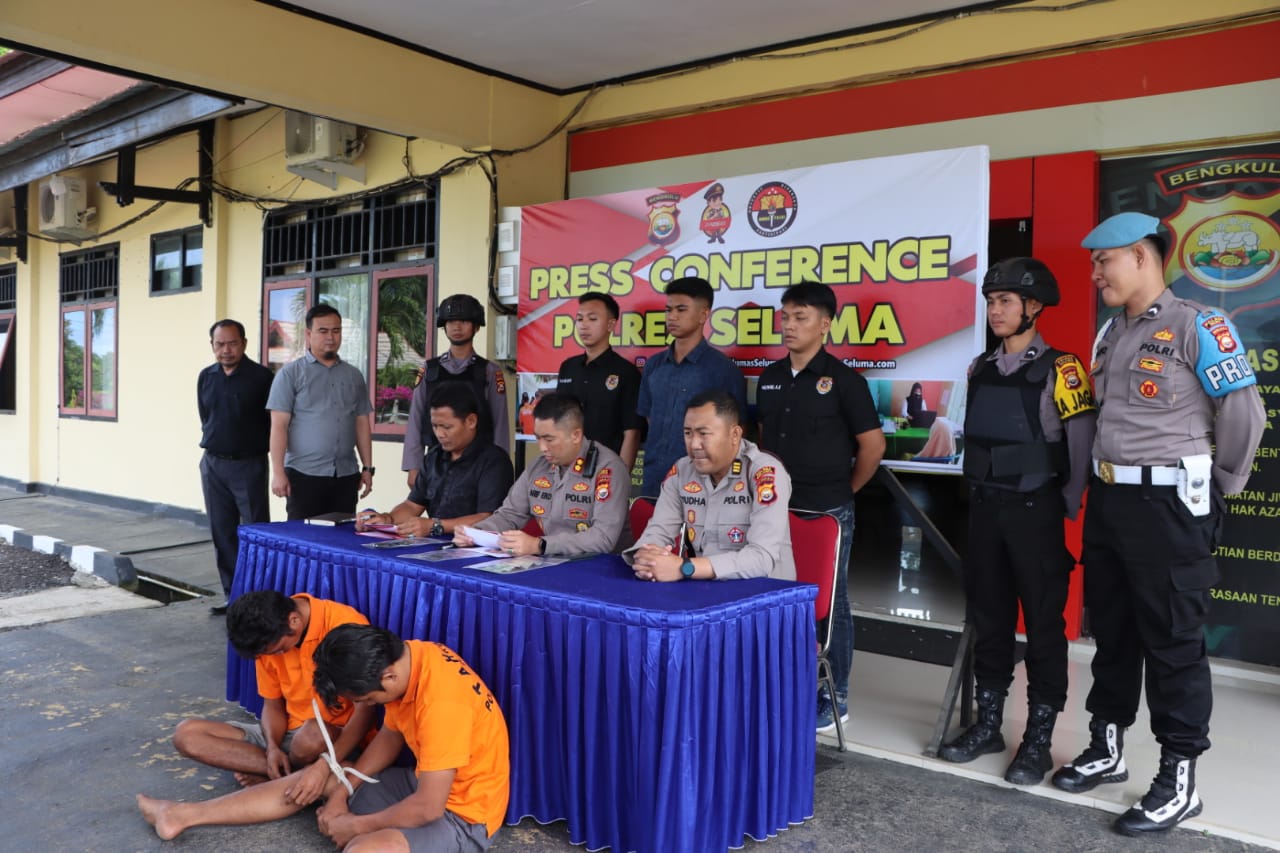 Kapolres Seluma Polda Bengkulu AKBP Arif Eko Prasetyo, didampingi Kabag Ops AKP Yudha Setiawan dan Kasat Reskrim Iptu Dwi Wardoyo saat press release di Mapolres Seluma, Selasa (7/3/2023) mengatakan, kedua pelaku adalah Di (34) warga Desa Penago I Kecamatan Ilir Talo Kabupaten Seluma, kemudian Na (28) warga Desa Pasar Pedati Kecamatan Pondok Kelapa Kabupaten Bengkulu Tengah.