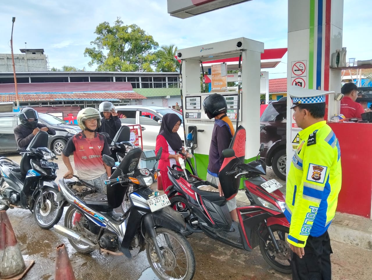 Personil Sat Lantas Melaksanakan patroli di SPBU Kel.pasar tais Kec. Seluma Kab Seluma guna memantau dan memonitoring ketersediaan Bahan Bakar untuk kendaraan yang melewati Kabupaten Seluma.