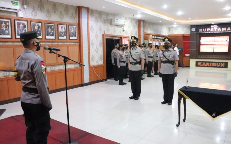 Dalam Amanatnya, Kapolres Karimun AKBP MUHAMMAD ADENAN, SIK menyampaikan Mutasi Jabatan Dilingkungan Polri Merupakan Salah Satu Upaya Penyegaran Organisasi Pada Aspek Sumber Daya Manusia Dan Aspek Pembinaan Kesatuan Serta Pembinaan Karier Yang Bersangkutan.