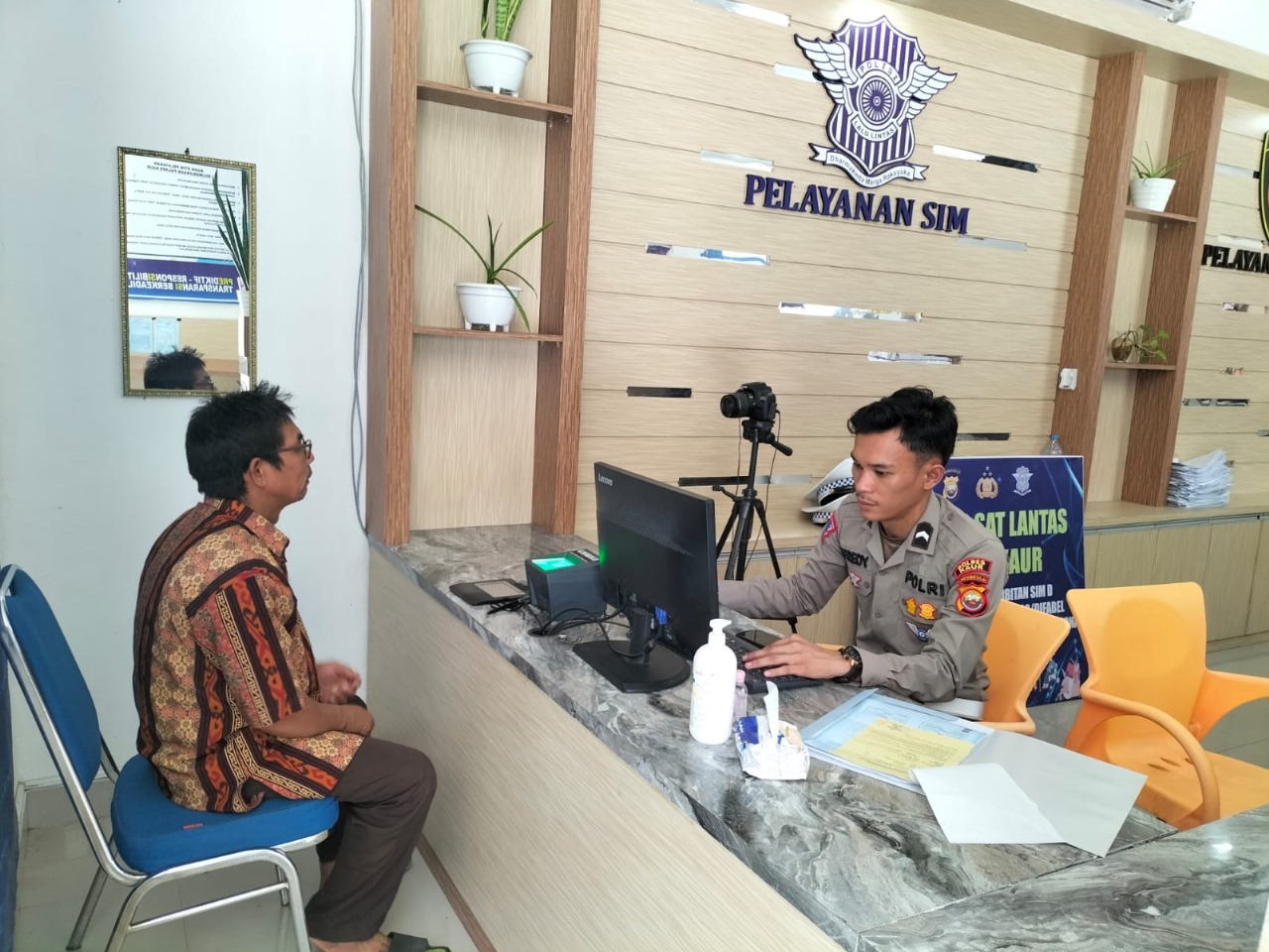 Kegiatan mekanisme Pelayanan Penerbitan bagi Pemohon SIM di SATPAS Polres Kaur dilaksankan oleh Personel Unit Regident Sat Lantas Polres Kaur, Brigpol Judico, Briptu A. Nobrian, Briptu Elvira, dan Bripda Tria F.