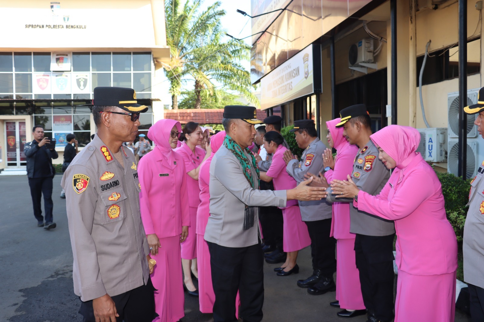 Acara dimulai dengan pemberian kalung penghormatan kepada Kapolda Bengkulu dan rombongan setibanya di Mapolresta Bengkulu. Kegiatan ini dihadiri oleh beberapa pejabat penting, di antaranya Wakil Wali Kota Bengkulu Ronny PL. Tobing, S.H., Dandim 0407/Bengkulu Kolonel Inf. Widi Rahman, S.H., M.Si, Kejari Kota Bengkulu Dr. Ni Wayan Sinaryati, SH., MH, serta berbagai unsur terkait lainnya.