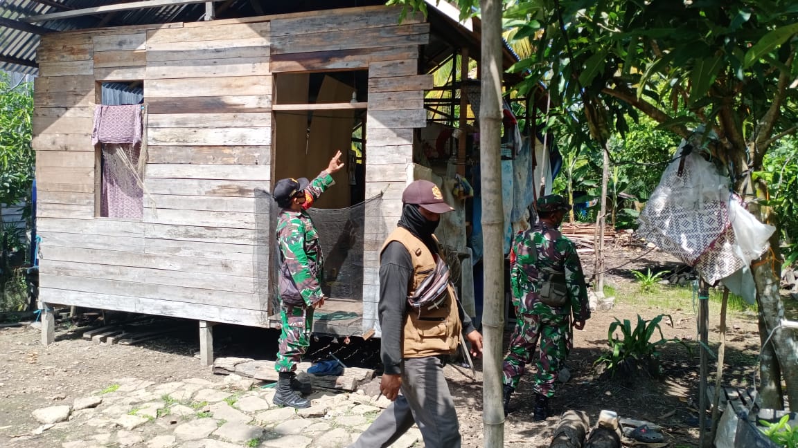 Mempawah – Sebagai Anggota Koramil 1201-01/Jongkat,Serda Suwito bersama mengecek kembali kondisi rumah milik Kakek Upek (69) warga Dusun Parit Wak Paik, Desa Peniti Dalam l yang menjadi sasaran rehab Rumah Tidak Layak Huni (RTLH) program Karya Bhakti Kodim 1201/Mph, Minggu (6/6/2021).