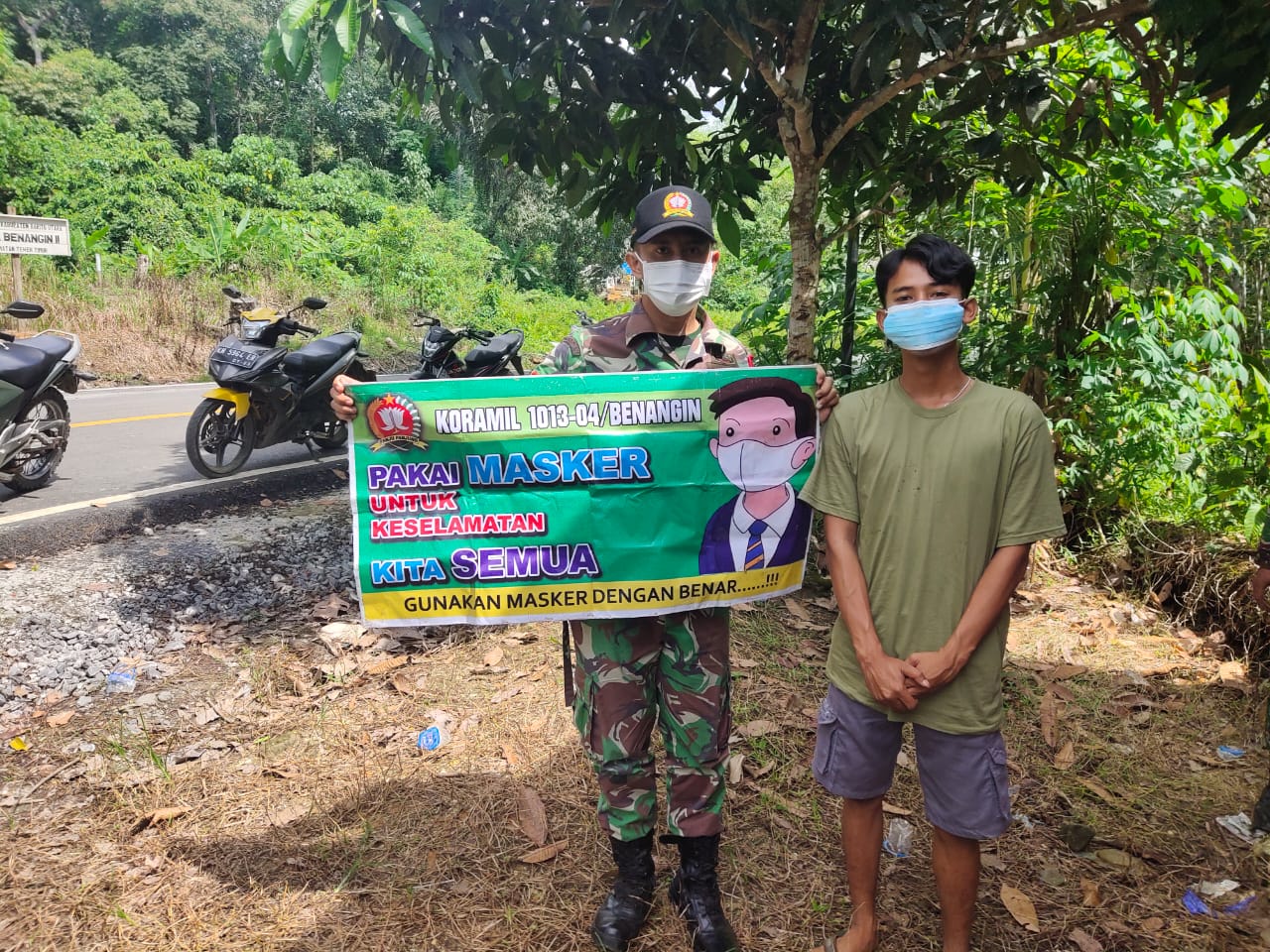 Babinsa Koramil 1013-04/Benangin Tegakkan Disiplin Protkes Covid-19