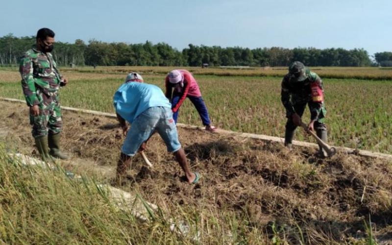 Seperti terlihat saat ini, Satgas TMMD Kodim Pati bersama warga sedang membersihkan limbah jerami agar proses pengurukan jalan bisa dilanjutkan, Minggu (06/6/2021).