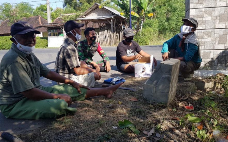 Ngopi dan ngobrol bersama TNI menjadi kebiasaan baru bagi masyarakat Desa Tamansari, Kecamatan Jaken, Kabupaten Pati, Jawa Tengah, Minggu (06/06/2021).