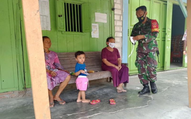 Sebagai bentuk partisipasi dan dukungan terhadap Posko Covid-19 di Desa Tamansari, Satgas TMMD ikut andil dalam pembagian masker kepada warga dan memberikan himbauan untuk tetap mematuhi protokol kesehatan dalam melakukan aktivitas sehari-hari, Minggu (06/6/2021)