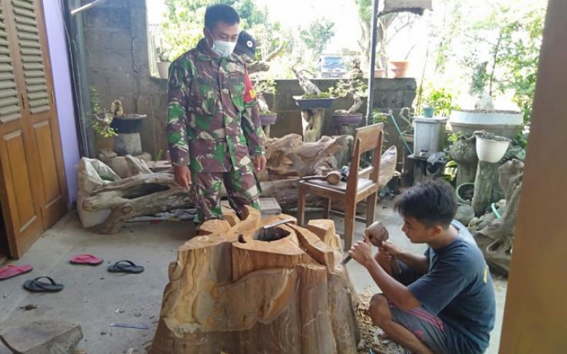 Prajurit Satgas TMMD Kodim Pati menyempatkan diri untuk bertandang ke rumah rumah kerajinan ukir dan meubel yang ada di Desa Tamansari, Kecamatan Jaken, Kabupaten Pati, terutama kerajinan tangan ukir kayu abstrak meskipun kini sudah banyak peralatan mesin ukir canggih.