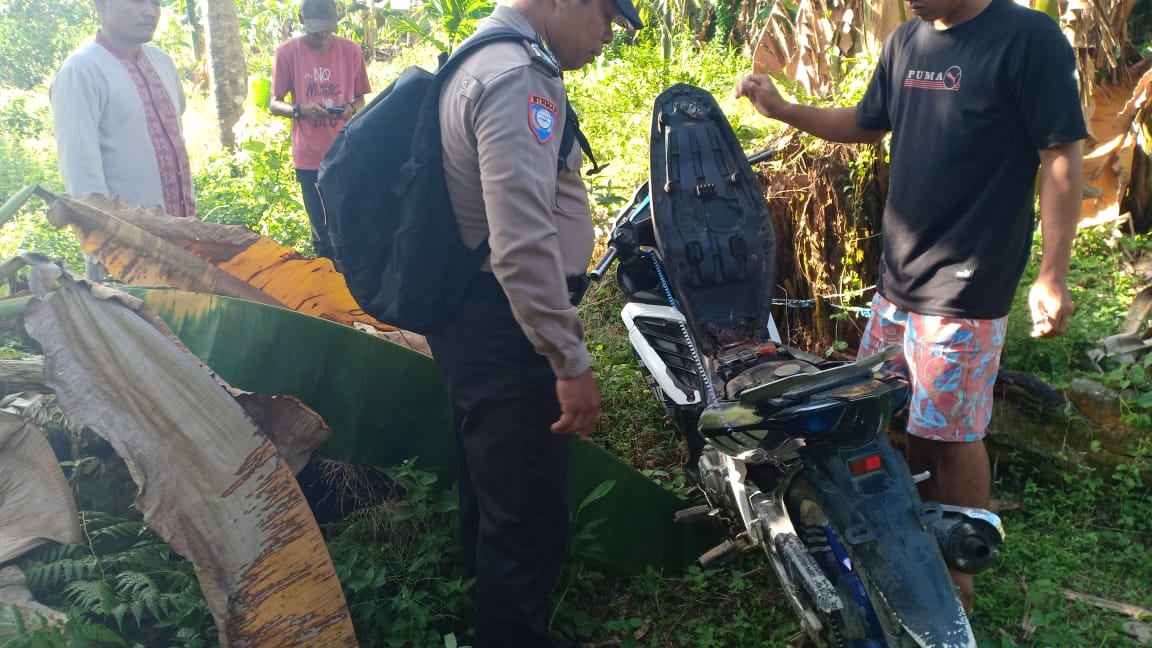 Berdasarkan keterangan dari korban si pemilik Motor yakni Sdr Febri Rianto, kejadian dugaan “pencurian tersebut terjadi pada dini Hari (06/06/2023) tepatnya sekitar pukul 04.40 WIB berawal dari Febri ingin berangkat Salat Subuh dan melihat sepeda motor miliknya sudah tidak ada lagi dan pintu rumah belakang sudah dibuka, akhirnya mengambil inisiatif untuk mencari sepeda motornya di sekeliling rumah dan belakang gudang bersama saudaranya, setelah berusaha mencari disekeliling gudang, pada jarak sekitar 50 meter di temukanlah sepeda motornya di bawah pohon pisang dengan kunci motor masih tergantung dan tidak jauh dari ban belakang motor di temukan juga kunci 12 dan kunci 13,” ungkap Febri.