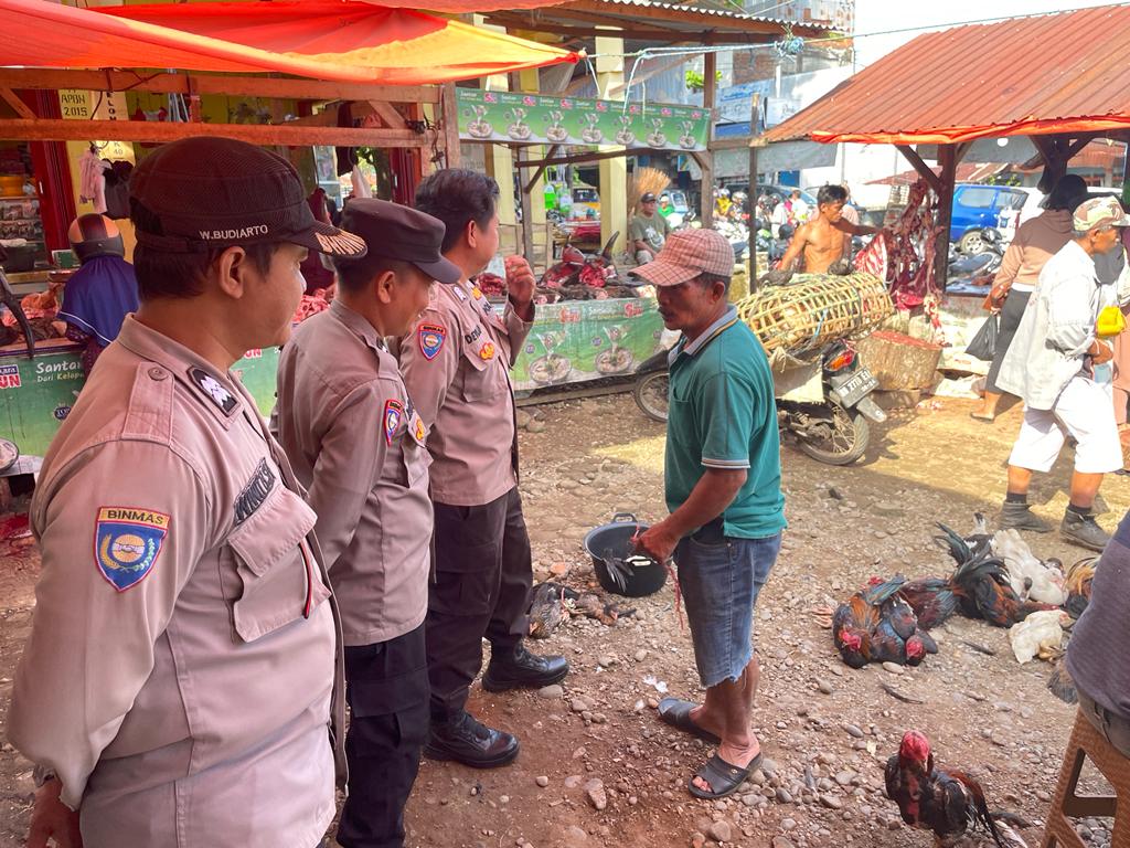Dalam giat Minggu Kasih yang di lakukan Bhabinkamtibmas ke pasar menyapa para pedagang yang memiliki lapak disekitar pasar, dalam dialognya dengan pedagang, Bhabinkamtibmas menyampaikan imbauan dan arahan terkait dengan meningkatkan Kewaspadaan terhadap berbagai aksi dan modus penipuan yang menjadikan para pedagang dan warga masyarakat lainnya sebagai korban kejahatannya.