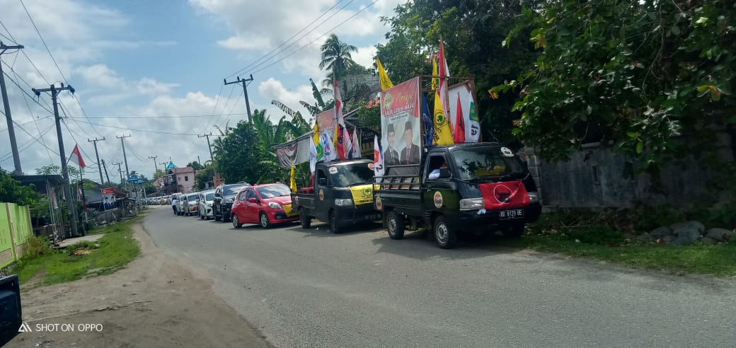 Para simpatisan, membawah tuliasan dengan slogan “KAUR MAJU” dan massa juga bernyanyi untuk memberikan dukungan kepada Gusril Pausi dan Medi. Ada yang tampak bergoyang-goyang badan, sembari meneriakkan slogan, serta ada juga yang mengibar-ngibarkan berdera partai.