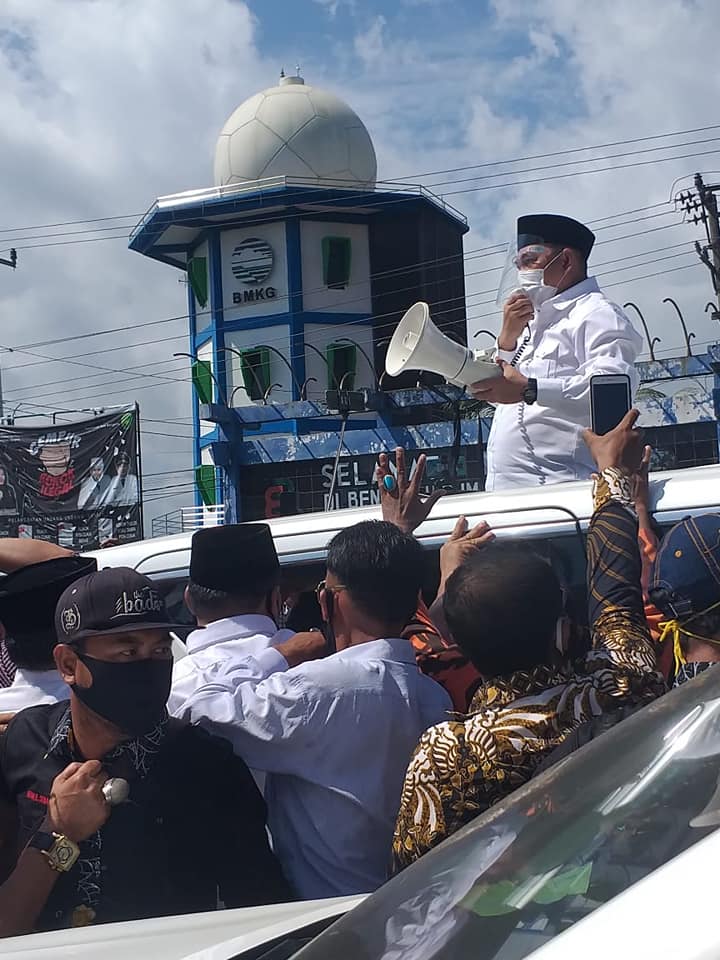 Kedatangan Agusrin disambut meriah oleh para pendukungnya yang datang dari berbagai daerah di Bengkulu. “Gas poll,” teriak pendukung Agusrin bersemangat.