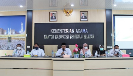 Bengkulu, Siberindo.co – Dalam rangka menilai keberhasilan pelaksanaan tugas dan fungsi satuan kerja di lingkungan Kantor Kementerian Agama Kabupaten Bengkulu Selatan, maka Inspektorat Jendral Kementerian Agama Republik Indonseia bertolak ke Bengkulu Selatan untuk mengadakan audit kinerja di MAN Bengkulu Selatan dan MTsN 2 Bengkulu Selatan. Untuk memulai audit ini, tim Itjen Kemenag RI mengadakan Entry Meeting di Aula PLHUT Kemenag Bengkulu Selatan yang dihadiri oleh guru madrasah dan pegawai Kantor Kemenag BS, pada Selesa (5/10/2021).