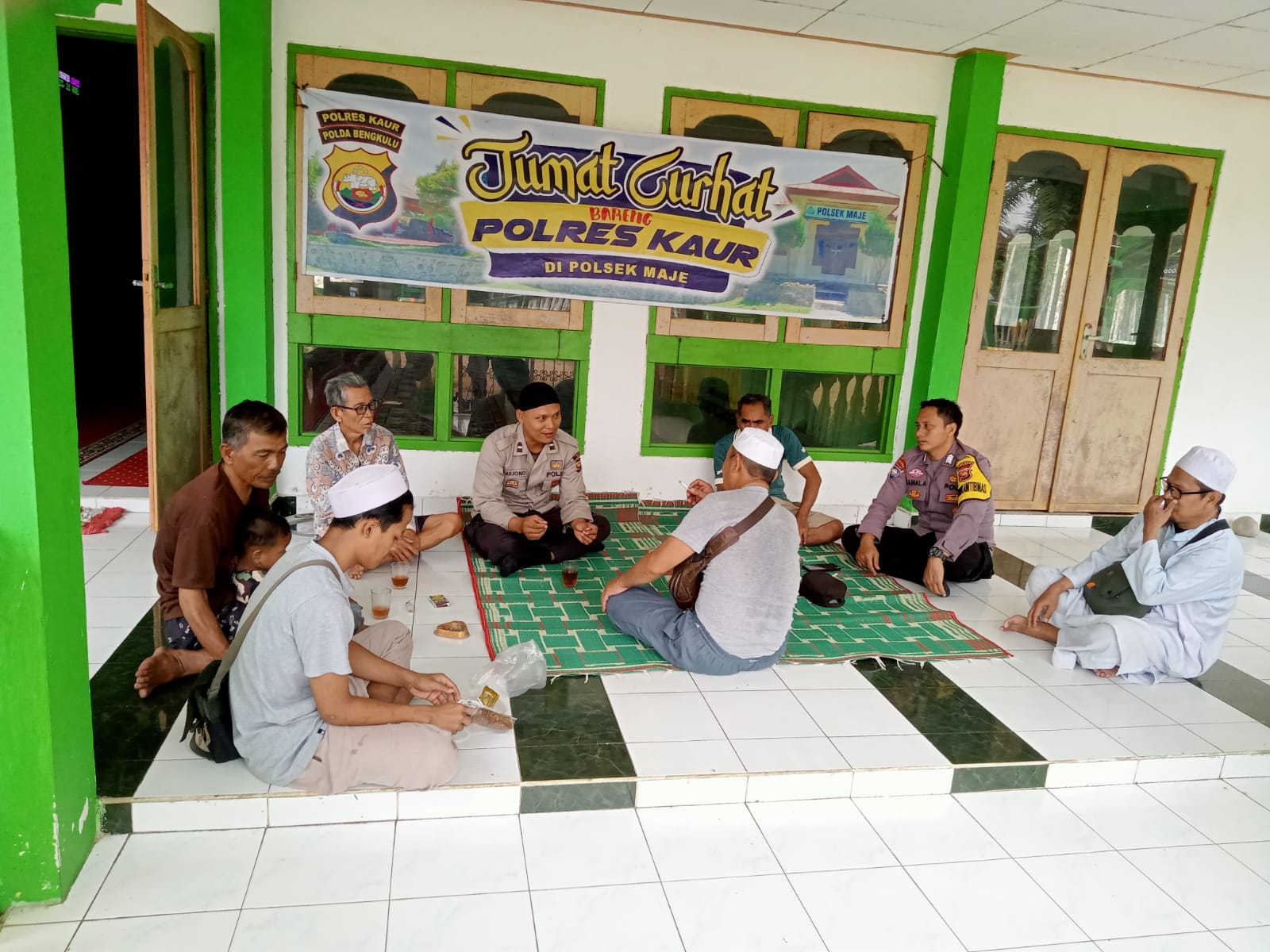 Kaur – Polsek Maje Polres Kaur Polda Bengkulu, melaksanakan kegiatan Jumat Curhat di Masjid Mutaqin, Desa Linau Kecamatan Maje, Kabupaten Kaur, Jumat (6/10/2023).