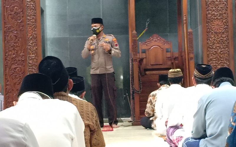 Kapolsek Gemuh AKP Abdullah Umar, SH. bersama jajarannya melaksanakan  Safari Jumat di Masjid Jami Al-huda desa Gemuh Blanten Kecamatan  Gemuh Kabupaten Kendal. Jum’at, 6/11/2020.