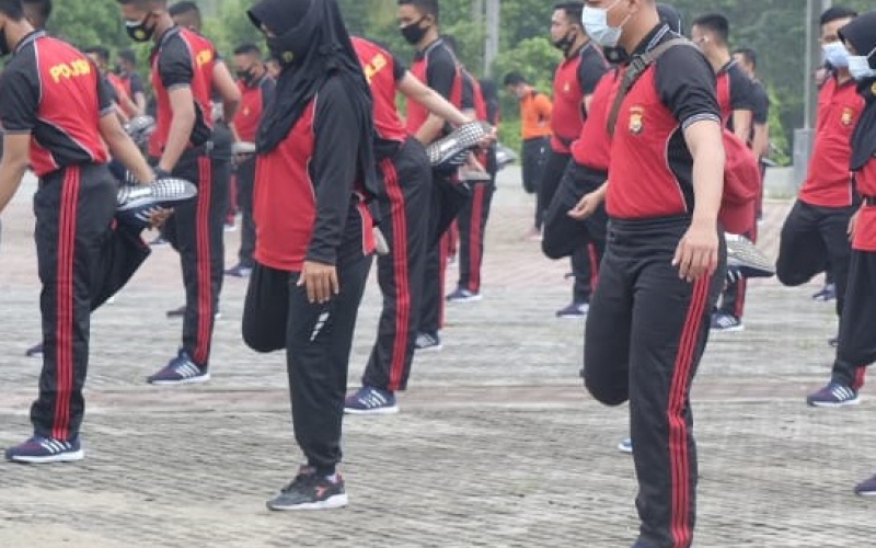 Guna menjaga kesehatan dan meningkatkan daya tahan tubuh , Personil Polda Bengkulu melaksanakan olahraga senam setelah apel pagi, Jumat (06/11/2020). Kegiatan olahraga senam diikuti oleh pejabat utama, para perwira, seluruh personil Polda Bengkulu serta Aparatur Sipil Negara (ASN).