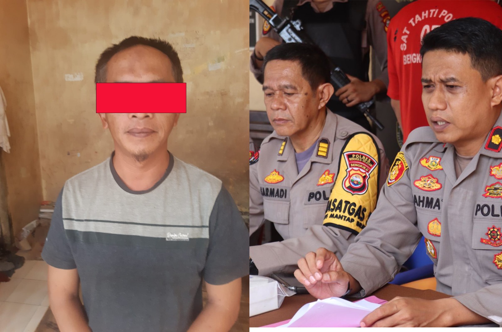 Kapolres Bengkulu Selatan Polda Bengkulu AKBP Florentus Situngkir melalui Wakapolres Kompol Rahmat Hadi Fitrianto didampingi Kasi Humas AKP Sarmadi dan Kasat Reskrim Iptu Susilo saat press release di Mapolres Bengkulu Selatan, Senin (6/11/2023) menjelaskan, korban yang diketahui masih dibawah umur (16 tahun), merupakan siswi dari tersangka.