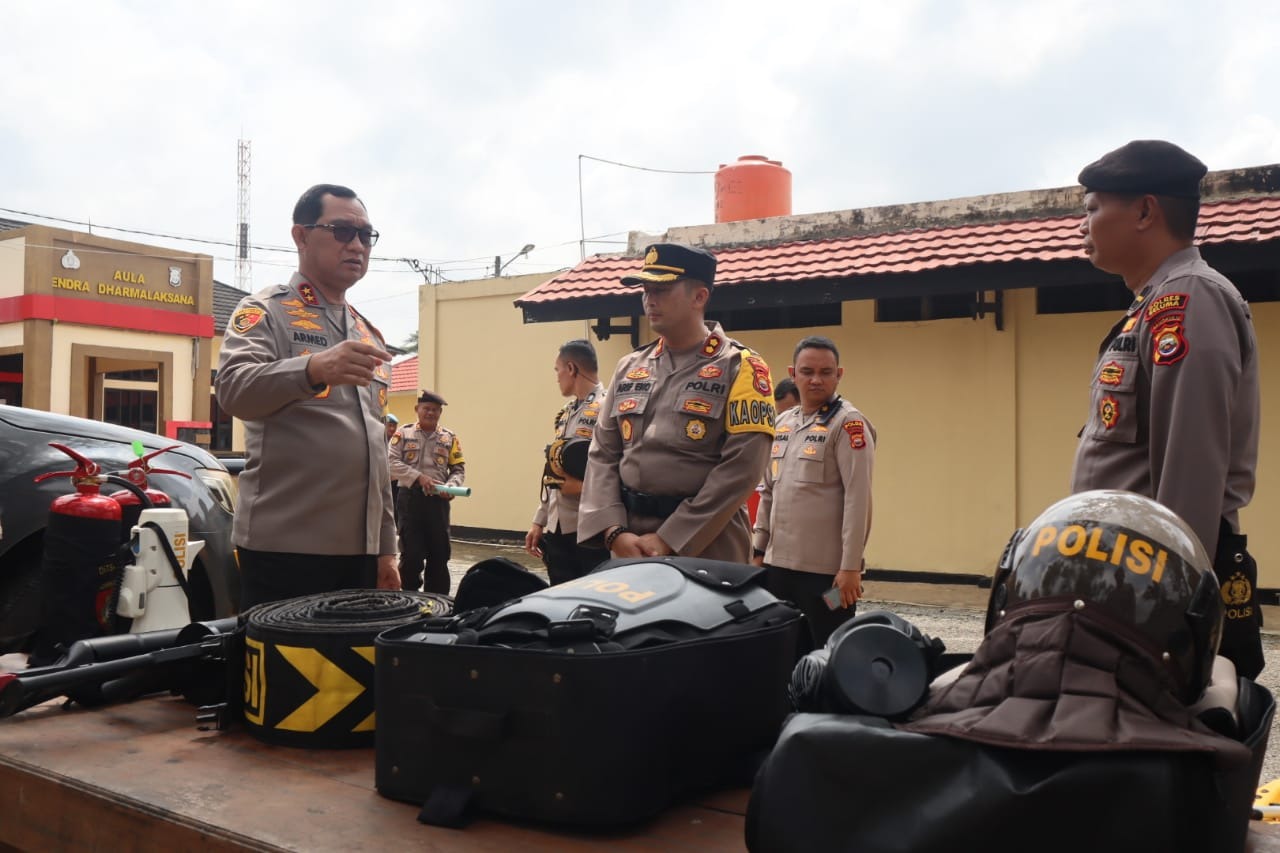 Dijelaskan Kapolres Seluma AKBP Arif Eko Prastyo, S.I.K., M.H., Kunjungan Kapolda Bengkulu ke Mako Polres Seluma guna melaksanakan pengecekan Posko OMB Nala 2023-2024 di Ruang Command Center, dan melakukan pengecekan peralatan dalmas dalam rangka OMB Nala 2023-2024.