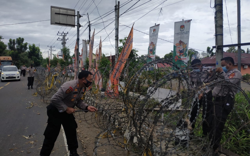 Wakapolres menjelaskan, pemasangan kawat Barrier ini sesuai SOP untuk pengamanan objek vital sekaligus melindungi kantor KPU Mura.
