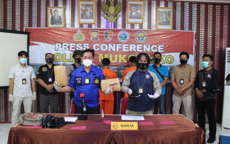 Publikasi keberhasilan pengungkapan perkara tindak pidana narkoba, Polres Mukomuko Polda Bengkulu, Minggu (06/12) menggelar kegiatan Press Conference bersama sejumlah awak media.