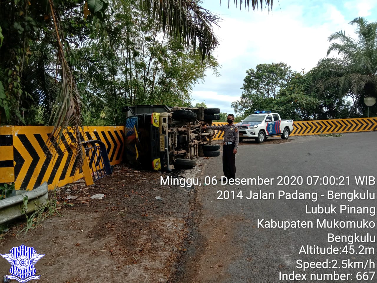 Kapolres Mukomuko Polda Bengkulu AKBP Andi Arisandi, SH, S.IK, MH, didampingi Kasat Lantas IPTU Dendi Putra, SH, MH, melalui KBO IPDA Dedi Napitupulu, S.IP, kepada awak media menerangkan peristiwa laka lantas hanya mengakibakan pengendara mobil truk mengalami luka ringan namun kerugian materi diduga mencapai tiga puluh juta rupiah.