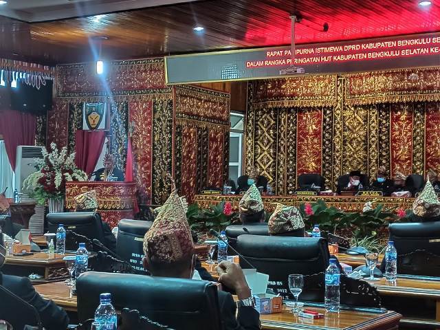 Rapat paripurna HUT BS dengan tema Dengan Kenormalan Baru Kita Wujudkan Bengkulu Selatan EMAS dan Cinta BS, dipimpin langsung oleh Ketua DPRD BS Barli Halim berjalan lancar. (*/cr1)