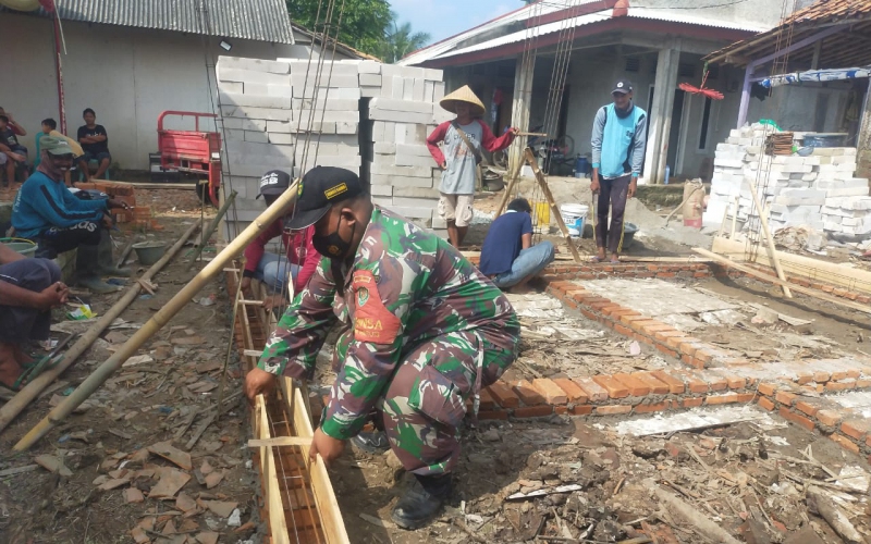 Satgas Tentara Manunggal Membangun Desa (TMMD) Ke-110 Kodim 0604/Karawang, lakukan Gotong-royong bantu rumah tidak layak huni, Sabtu (06/03/2021).