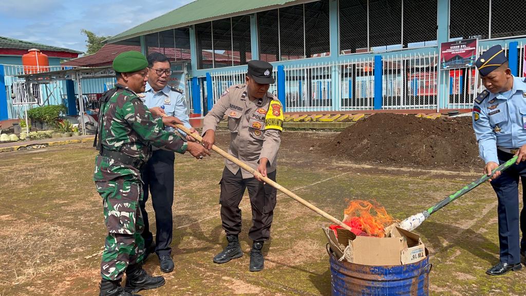 “Barang bukti yang dimusnahkan merupakan barang yang dinilai terlarang untuk dimilik warga binaan dan berhasil didapatkan saat digelar razia beberapa waktu yang lalu, ungkapnya.