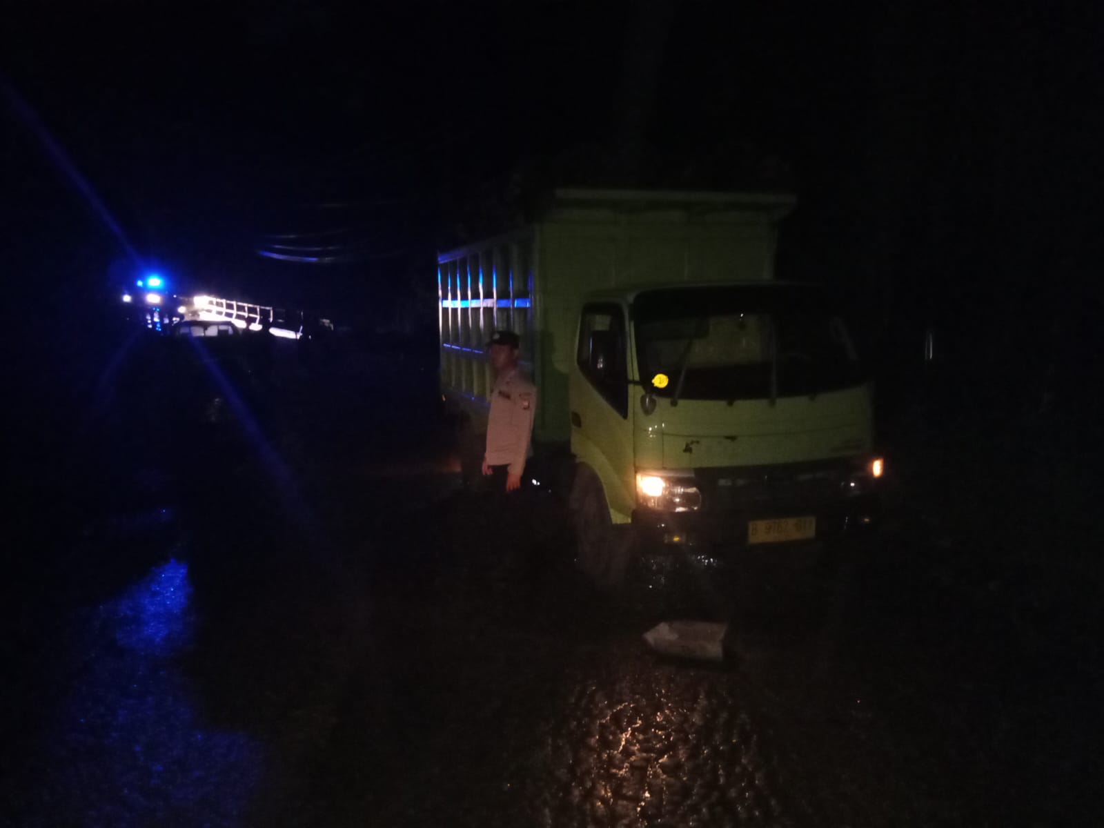 “Sementara kita gunakan buka tutup dan mengutamakan kendaraan kecil terlebih dahulu, dikarenakan kondisi jalan yang licin akibat hujan dan posisi kendaraan yang patah as juga sedikit memakan jalan, sehingga untuk kendaraan roda 4 tidak bisa untuk lewat, maka dari itu kita utamakan kendaraan yang kecil tersebih dahulu untuk mengurangi kemacetan,” ungkapnya.