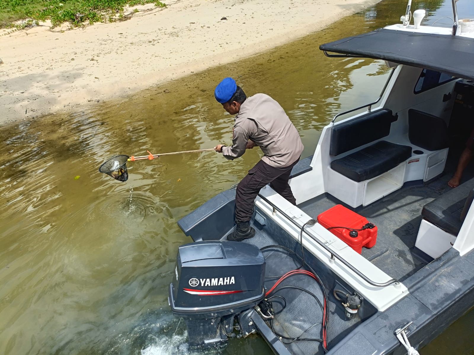 Menggunakan alat sederhana yakni jaring, personil secara telaten menyusuri area sungai untuk menjaring sampah-sampah yang berserakan. Bripka Andri mengatakan kegiatan bersih-bersih sampah ini merupakan agenda rutinitas yang dilakukan personil Satpolairud Polres Kaur dalam rangka menjaga lingkungan agar tetap bersih dan indah.