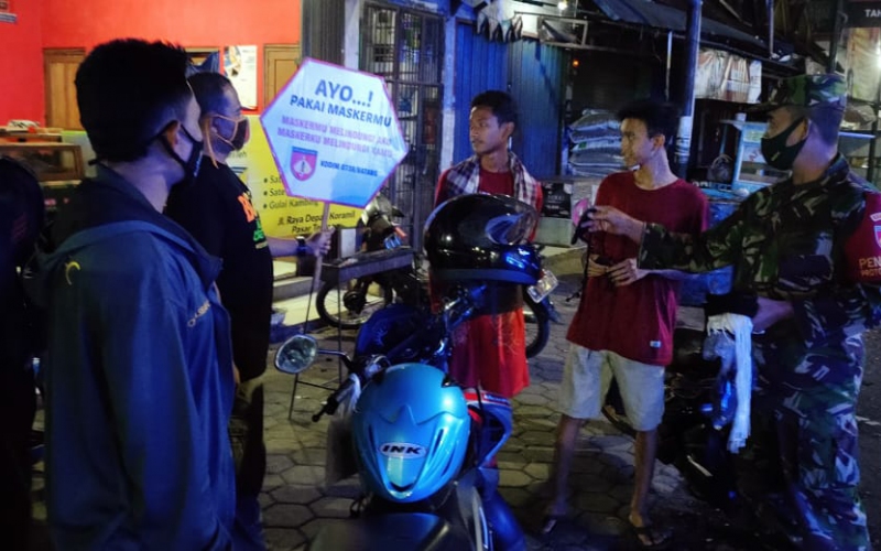 Hal itu dilakukan Babinsa Koramil 06/Tersono Peltu Arifin dan satu orang Babinsa melaksanakan PPKM Mikro dengan menghimbau serta membagikan masker kepada masyarakat disepanjang Jalan Raya Komplek Pasar Tersono, Kecamatan Tersono, Kabupaten Batang, pada minggu (6/6/21) malam.
