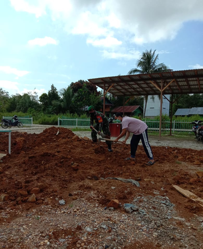 Antusiasme warga bersama aparat Koramil 1013-02/Montalat nampak bahu membahu memperbaki musolah yang rusak, Perbaikan musolah tersebut dilaksanakan karena warga masyarakat yang sering melaksanakan ibadah.