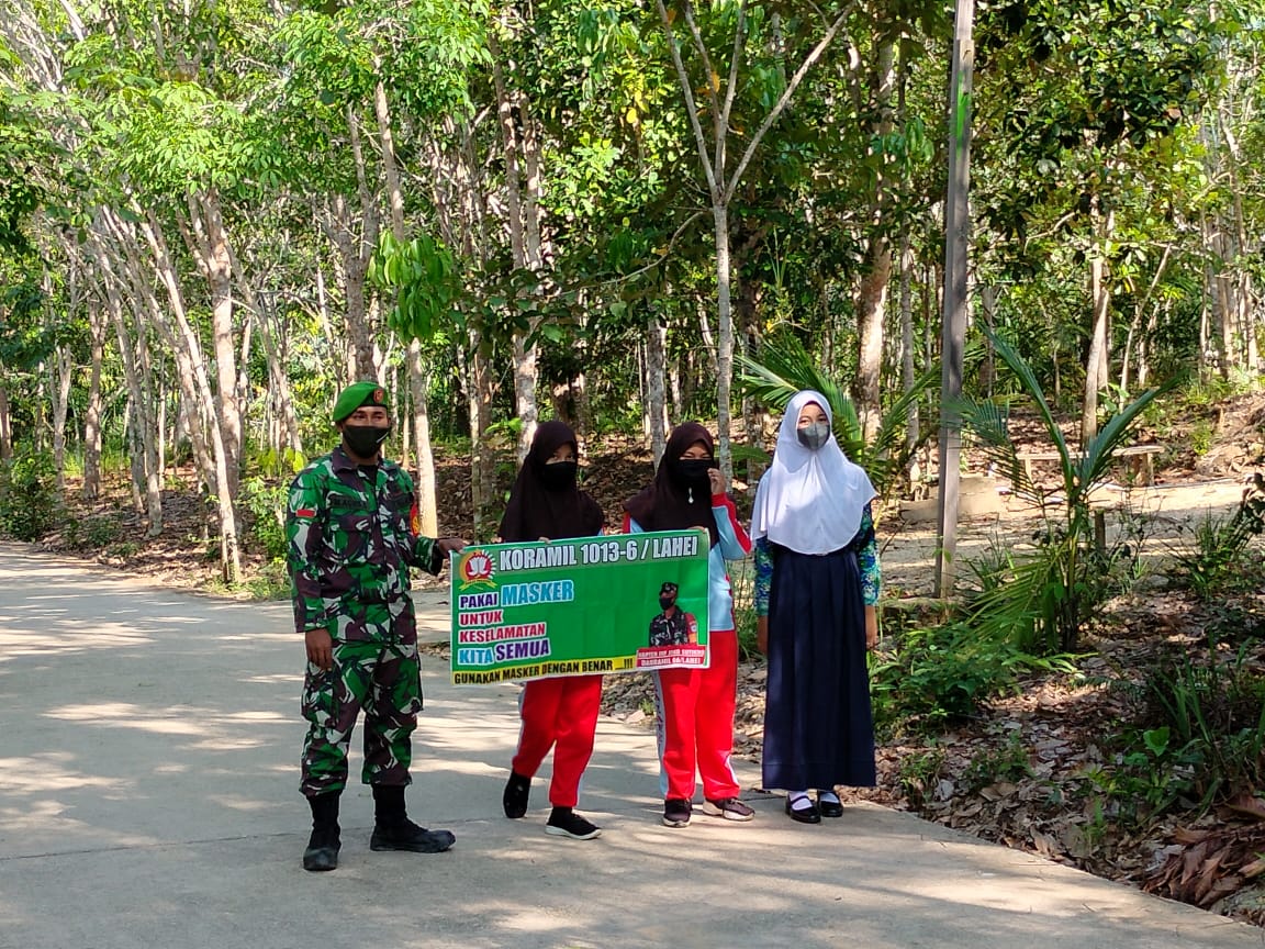 BARITO UTARA – Mengantisipasi penyebaran Covid-19, Satgas Pra TMMD (TNI Manunggal Membangun Desa) Kodim 1013/Muara Teweh Ke-111 memerintahkan, Babinsa Koramil 1013-06/Lahei melakukan kekegiatanan Komsos (Komunikasi Sosial) sosialisasi protokol kesehatan Covid-19, Di wilayah Desa Karamuan Kecamatan Lahei Barat Kabupaten Barito Utara, Pada hari Selasa (08/06/21).
