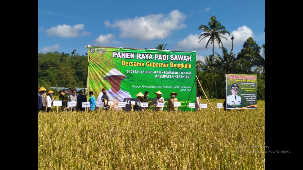 Bengkulu, Siberindo.co – Gubernur Bengkulu Rohidin Mersyah bersama dengan petani melaksanakan panen raya padi di Kabupaten Kepahiang, tepatnya di Desa Tanjung Alam Kecamatan Ujan Mas Selasa (8/6/21). Tak hanya melakukan panen padi bersama dengan petani, Pemprov melalui Dinas Pertanian Provinsi mendistribusikan bantuan benih padi, jagung, alat mesin pertanian dan pupuk.