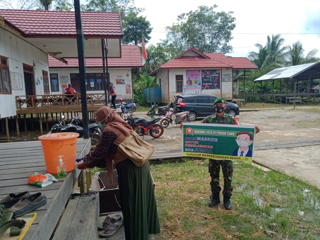 MURUNG RAYA – Tugas dan tanggung jawab sebagai aparat teritorial kewilayahan harus selalu memonitor dan memantau kondisi wilayahnya. Seperti yang dilakukan oleh Babinsa Koramil 1013-07/Puruk Cahu melaksanakan monitoring dan pengecekan serta sosialisasi tentang protokol kesehatan di Posko PPKM (Pemberlakuan Pembatasan Kegiatan Masyarakat) berbasis Mikro, di wilayah Kelurahan Puruk Cahu Kecamatan Murung Kabupaten Murung Raya, pada hari Selasa (08/06/21).