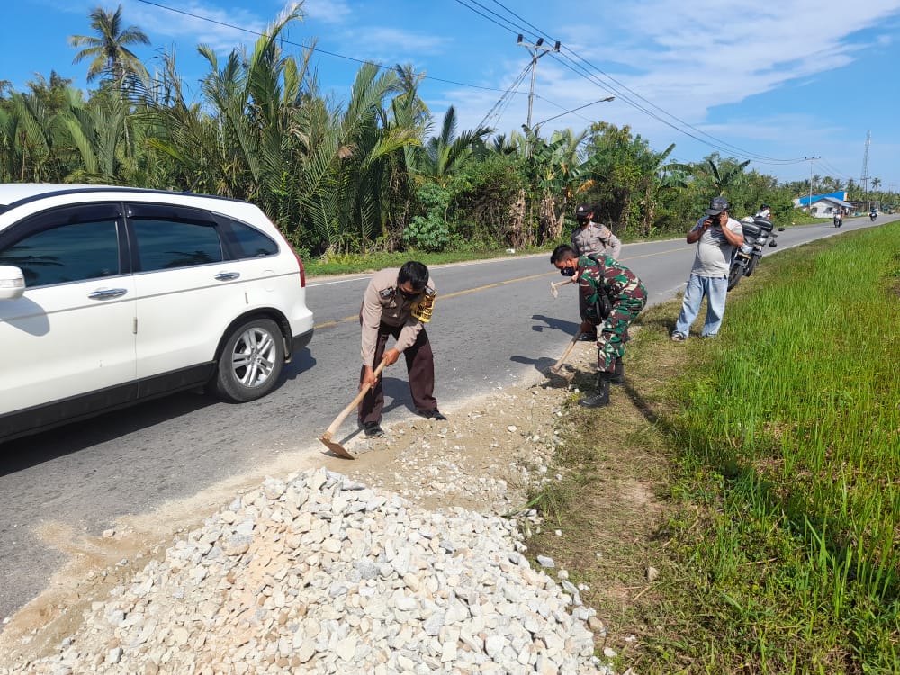 Prihatin Kondisi Jalan Rusak, Babinsa Sungai Kunyit Bersama waraga Perbaiki Jalan