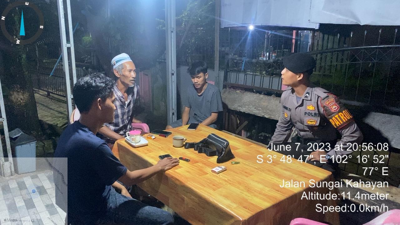 Personel Sat Samapta Polresta Bengkulu melaksanakan patroli dialogis dengan warga dan mengajak warga untuk menggiatkan Siskamling dalam menjaga situasi Kamtibmas dilingkungan, Rabu (07/6/2023).