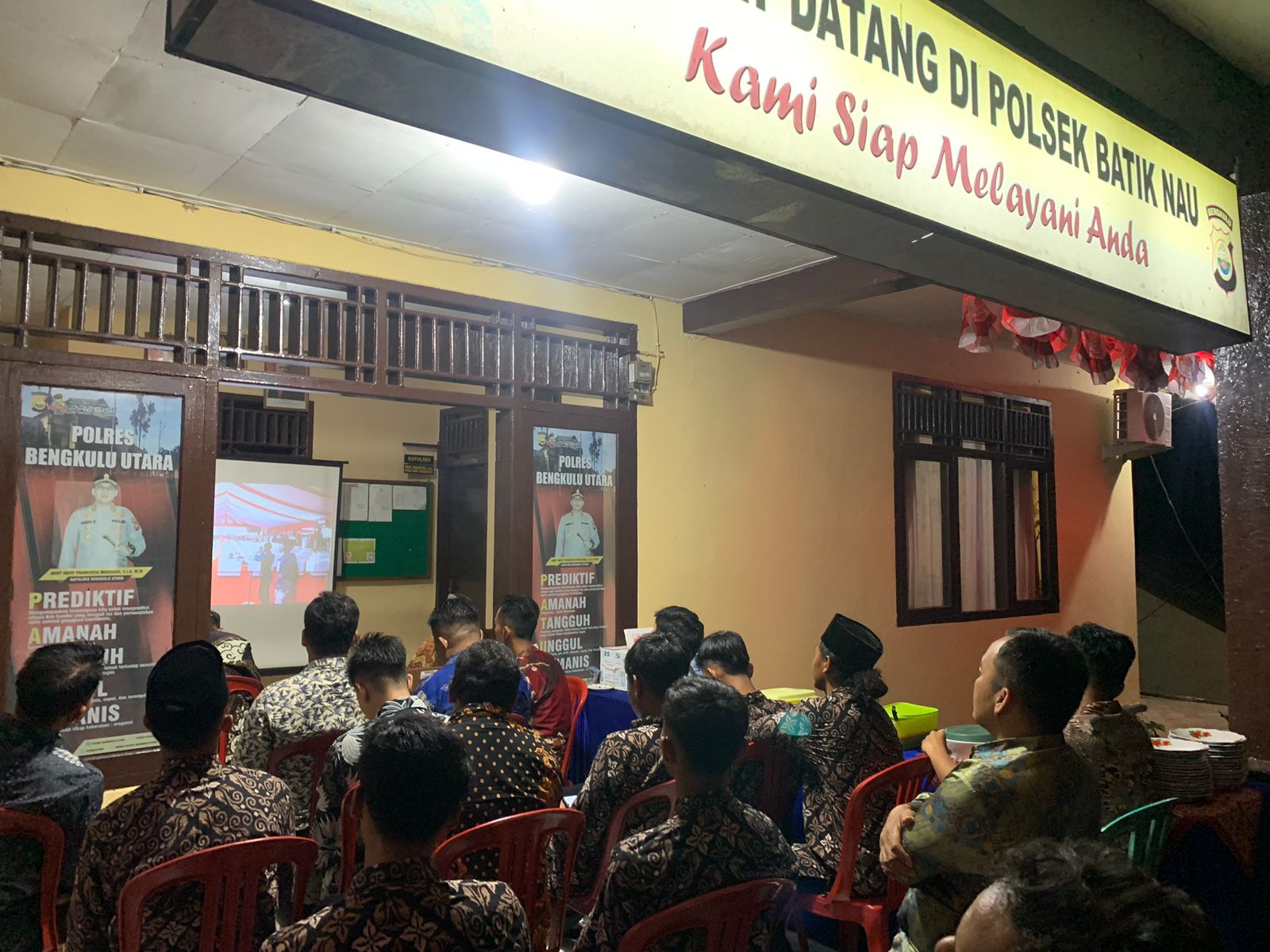 Bengkulu Utara – Bertempat di Mako Polsek Batik Nau, Polsek Batik Nau Polres Bengkulu Utara Polda Bengkulu menggelar Nonton Bareng (Nobar) Pagelaran Budaya Wayang Kulit dengan Lakon Wahyu Cakraningrat yang disiarkan secara Live dari lapangan Bhayangkara Mabes Polri, pada Jumat, (07/07/2023) pukul 20.00 WIB.