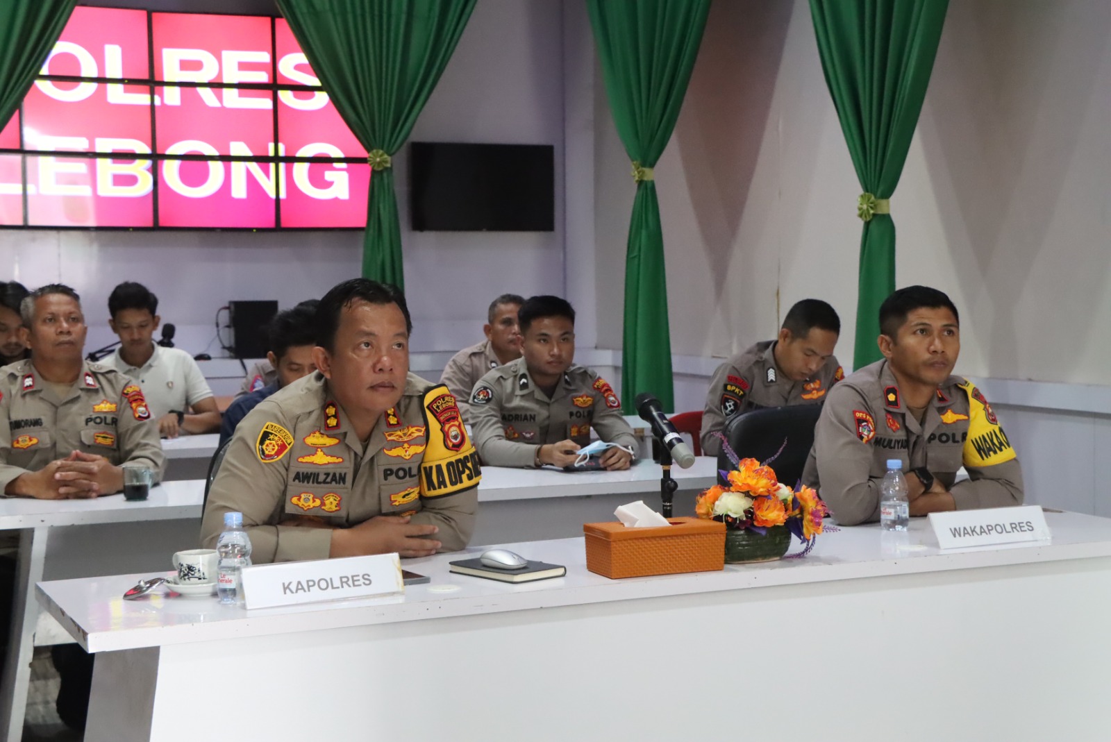 Lebong – Kapolres Lebong Polda Bengkulu AKBP Awilzan, S.I.K., bersama Wakapolres Lebong Kompol Muliyadi, Kasiswas Aiptu Ringgo Ringgo dan para operator Quickwins Triwulan III Tahun 2023, mengikuti Vicon Anev dan pemaparan Quickwins Triwulan III Tahun 2023 Polres Lebong.