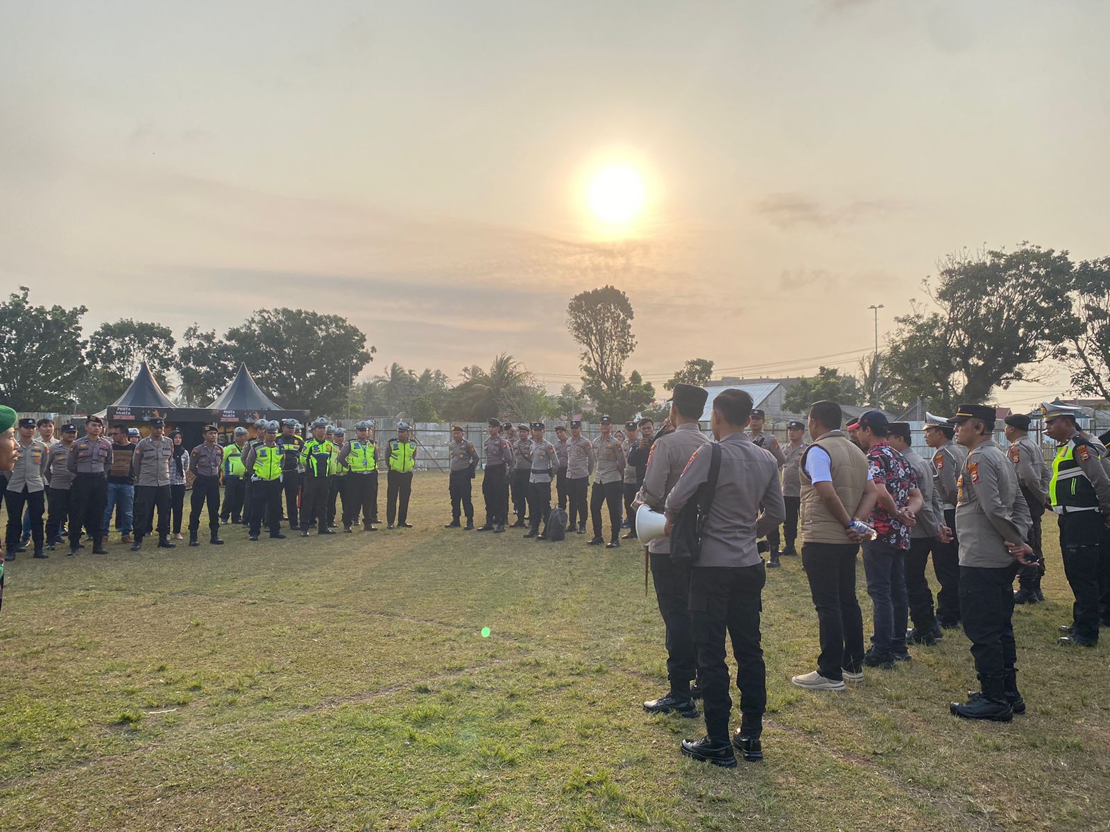 Kaur – Personel Polres Kaur Polda Bengkulu, pada Sabtu (7/10/2023) sore, melaksanakan persiapan pengamanan kegiatan Konser Musik Istimewa Djarum artis ibu kota Anji dan Ken Arok di Lapangan Merdeka Bintuhan, Desa Pasar Baru Kecamatan Kaur Selatan Kabupaten Kaur.