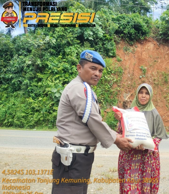 “Adapun Warga yang menerima bantuan sembako berupa beras 5 KG, yaitu Usmayadi (63) Pekerjaan petani warga Desa Selika II Kecamatan Tanjung Kemuning Kabupaten Kaur,” jelas Kapolsek.
