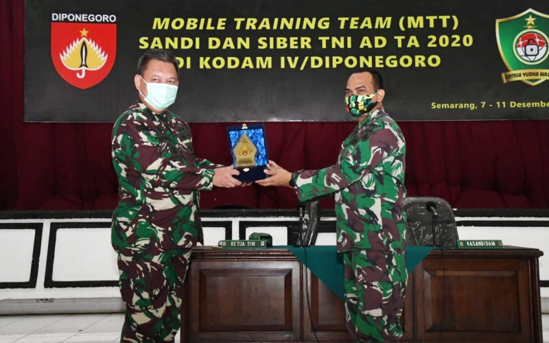 Menindaklanjuti pembentukan Satuan Pusat Sandi dan Siber TNI Angkatan Darat (Pussansiad), Kodam IV/Diponegoro menggelar Mobile Training Team (MTT) Sandi dan Siber TNI AD Tersebar di Balai Diponegoro, Jl. Perintis Kemerdekaan, Watugong. Senin (7/12/2020).