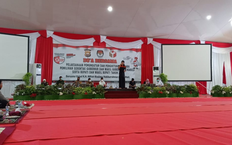 Mendukung kesuksesan pelaksanaan Pengamanan Pilkada serentak tahun 2020, Polda Bengkulu, Senin (07/12/2020) gelar kegiatan Doa Bersama Pelaksanaan Pemungutan dan Penghitungan Suara Pemilihan Serentak Gubernur dan Wakil Gubernur Bengkulu serta Bupati dan Wakil Bupati 2020.
