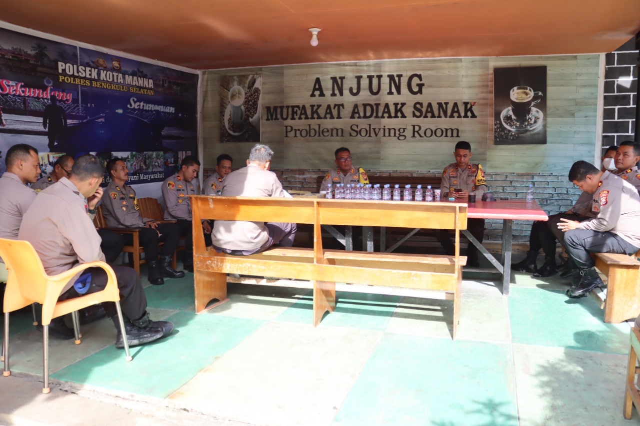 Bengkulu Selatan – Dalam rangka meningkatkan Sinergitas Internal Polres Bengkulu Selatan Polda Bengkulu Kapolres Bengkulu Selatan Akbp Florentus Situngkir SIK bersama Waka Polres Kompol Rahmat Hadi F S.H., S.I.K. ,melaksanakan coffee morning di Anjung Mufakat Polsek Kota Manna Polres Bengkulu Selatan Polda Bengkulu bersama Pejabat Utama Polres Bengku Selatan, pada Senin (08/01/24).