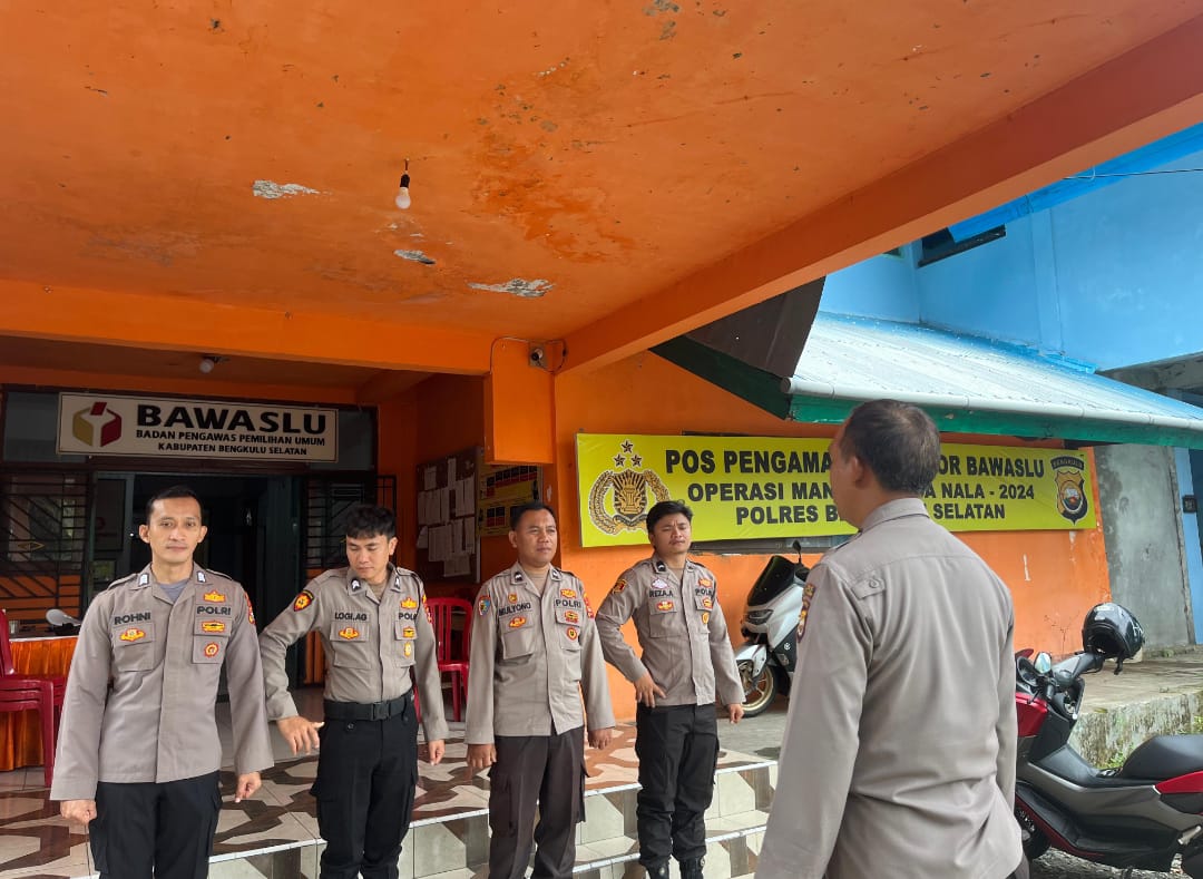 Bengkulu Selatan – Polres Bengkulu Selatan, Polda Bengkulu, terus memperketat pengamanan Kantor Bawaslu Bengkulu Selatan di Jalan Kartini, Kelurahan Pasar Baru, Kecamatan Kota Manna, Kabupaten Bengkulu Selatan, setelah pelaksanaan Pilkada 2024. Pengamanan dilakukan selama 1×24 jam untuk memastikan situasi keamanan tetap kondusif pasca-pemilu.
