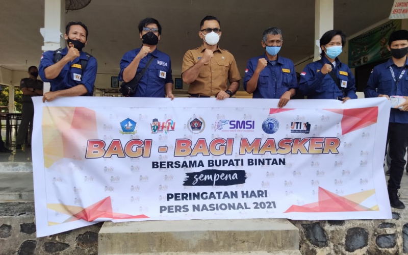 Pemerintah Kabupaten Bintan, melalui Kepala Dinas Kominfo Bintan, satpol PP Bintan serta Organisasi wartawan dan insan pers dalam memperingati Hari Pers Nasional (HPN) 2021 mengadakan ngopi bareng serta membagikan masker dan sembako di lampu merah simpang empat simpang ceruk ijuk tua kec tuapaya, Senin (08/02/21).